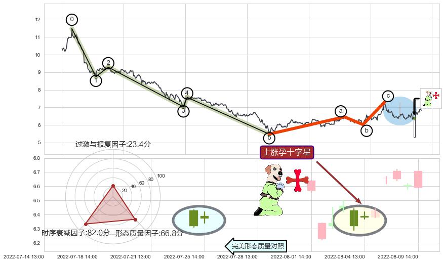 ➢ 🕰 价格走势在2022-08-03 14:00:00至2022-08-04 13:00:00期间形成上涨孕十字星,残存影响值:4.45