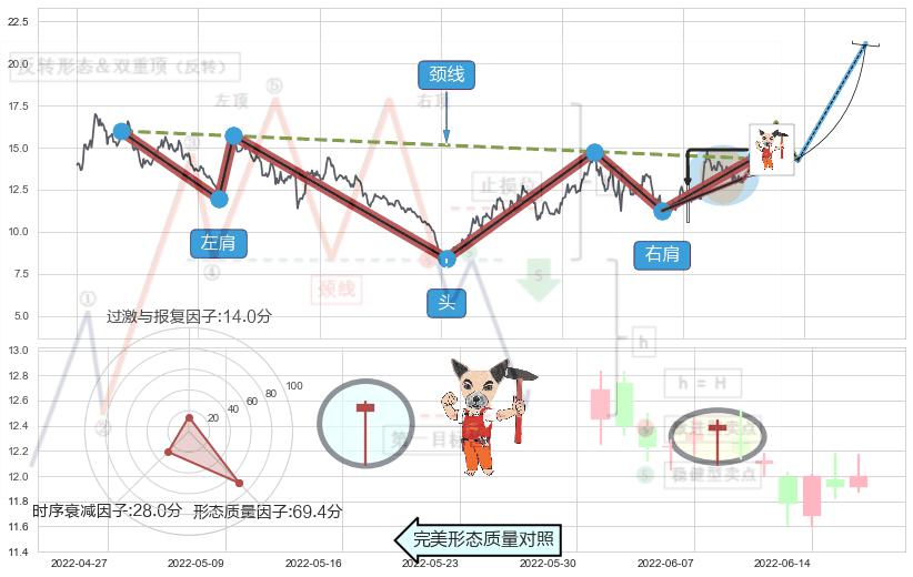 ➢ 🕰 价格走势在2022-06-13至2022-06-14期间形成曙光初现形态,残存影响值:2.00