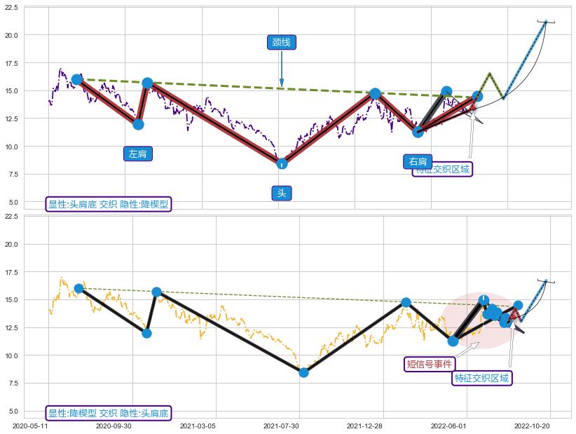 ➢ 降楔型属【短级别信号事件】头肩底属【长级别信号事件】长短周期组合信号事件, 短长事件长度比12.85%