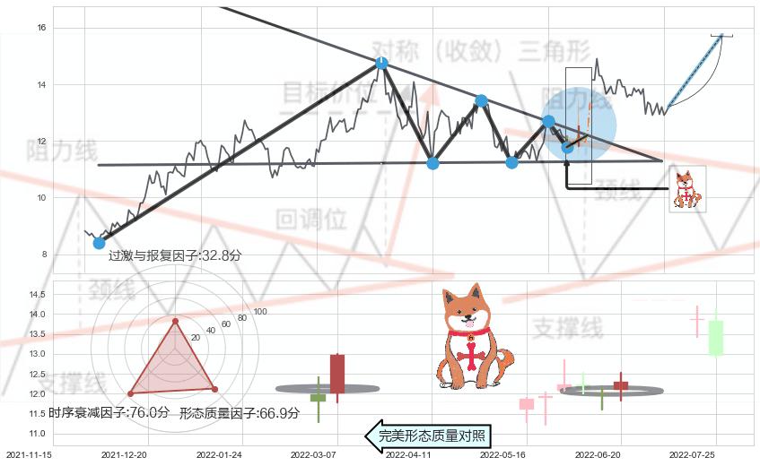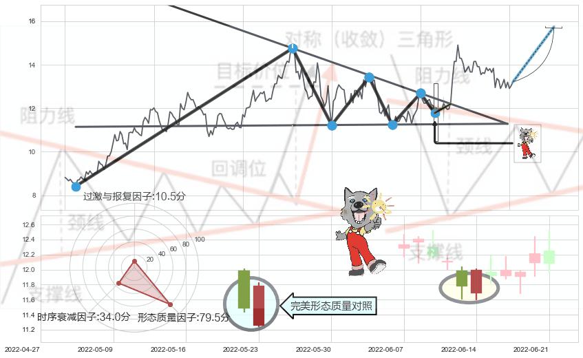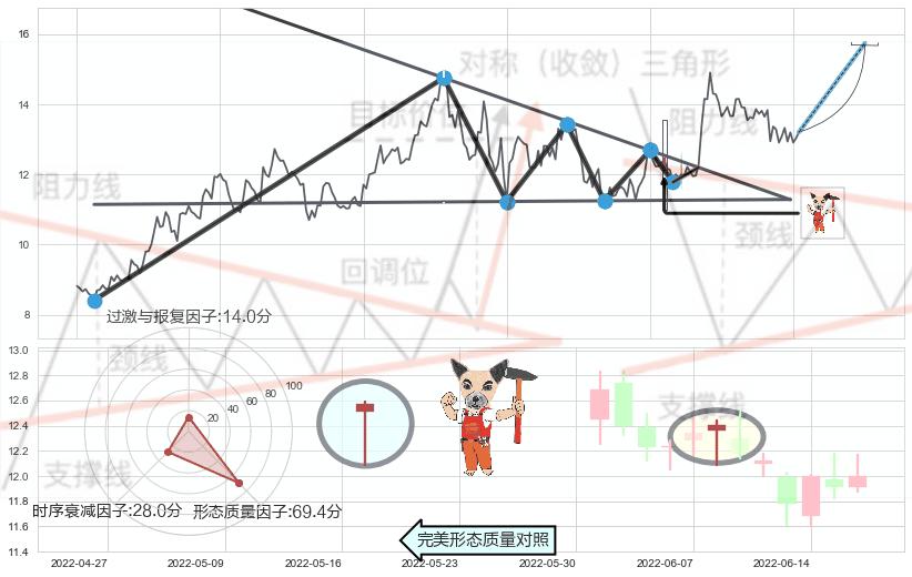➢ 【买1】: 激进型 买点 →(2022-06-24: 12.20 )形成突破上升【对称】三角形整理【整理】形态