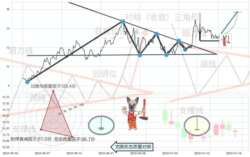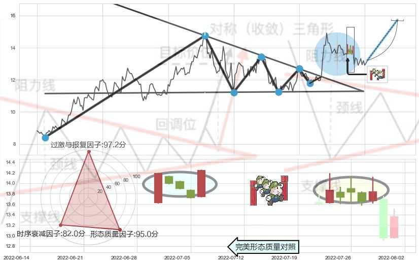 ➢ 曙光初现形态 🔜 上升对称三角整理阻力突破转换支撑上涨 综合量化分数:54.04 【偏多】