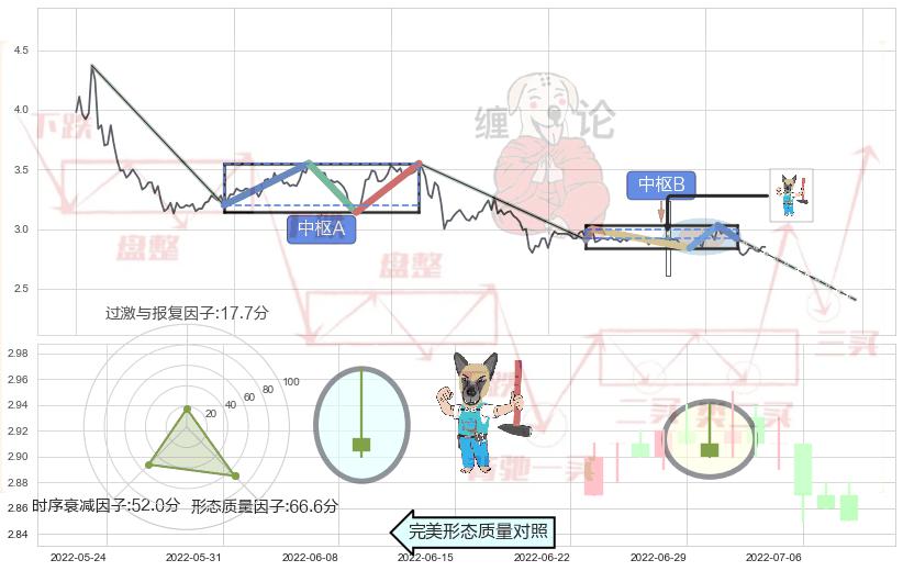 ➢ 看跌(高位倒锤头)流星线 🔜 缠论中枢点破位中枢B支撑下拉 综合量化分数:45.39 【偏空】