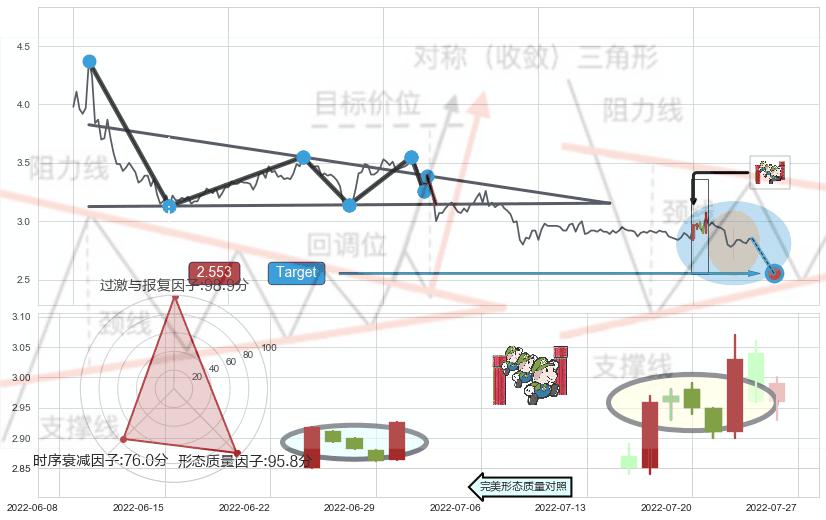 ➢ 上升三部曲(升势三鸦) 🔜 下降对称三角整理临近target支撑拐点上涨 综合量化分数:54.79 【偏多】