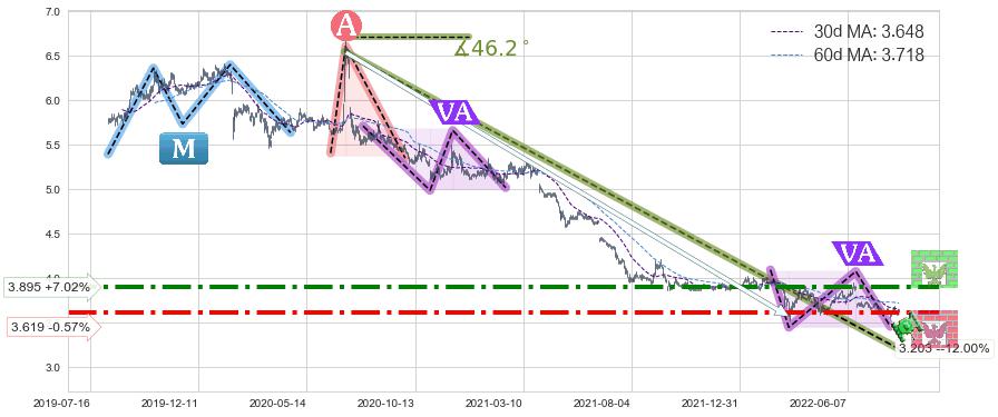 ➣ 【仅预测突破】最后价格:3.640与预测突破价格:3.910→【空间中等】后续最小【反转】第一目标价格→(2022-10-21: 4.25 )