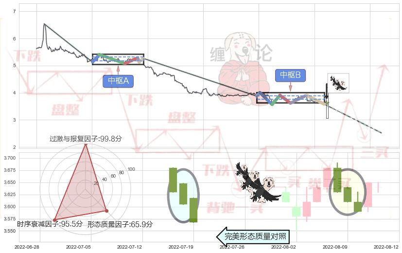 ➣ 下跌螺旋桨 + 缠论中枢点破位中枢B支撑下拉信号叠加后【目标达成率】中等,【看空】信号叠加【存续影响中等】