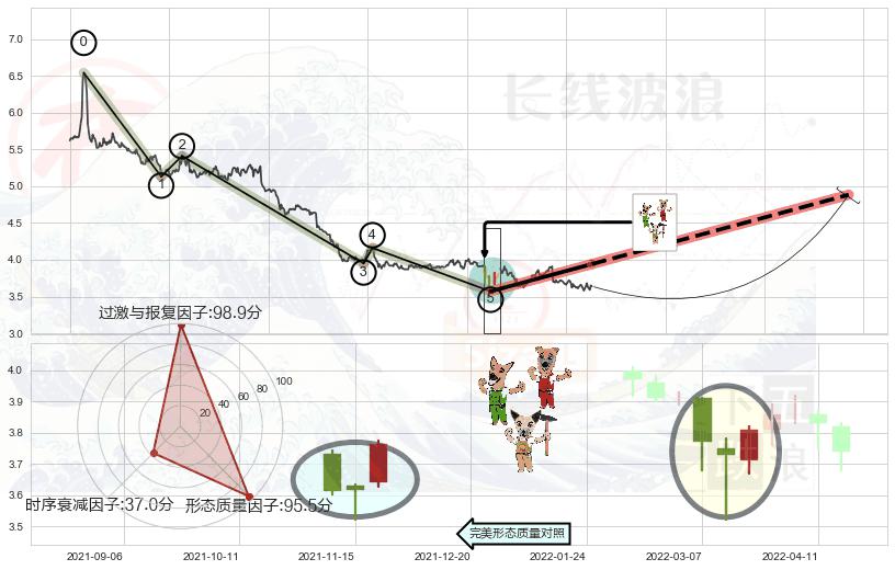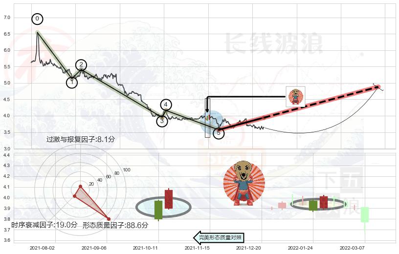 ➢ 曙光初现形态 🔜 波浪理论下跌浪:浪5反弹拐点 综合量化分数:53.04 【中性】