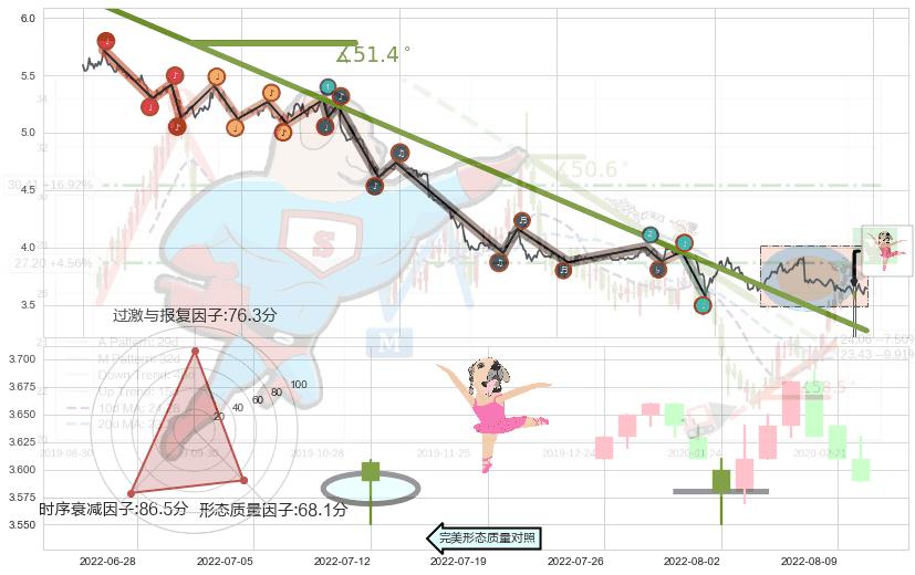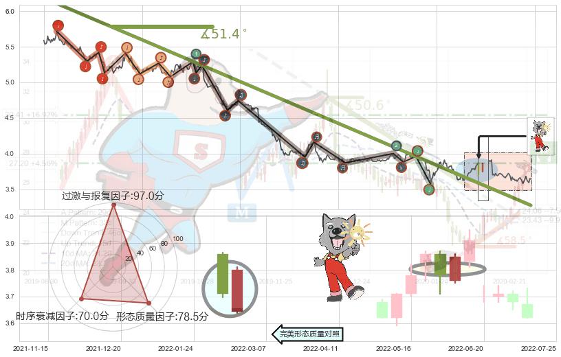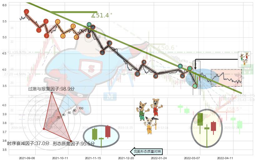 ➢ 2020-08-17-2022-04-01下跌趋势存在反转上涨[机会],其原下跌趋势的阻力位(3.273)已被突破[强支撑信号],原下跌趋势角度: 51.4˚
