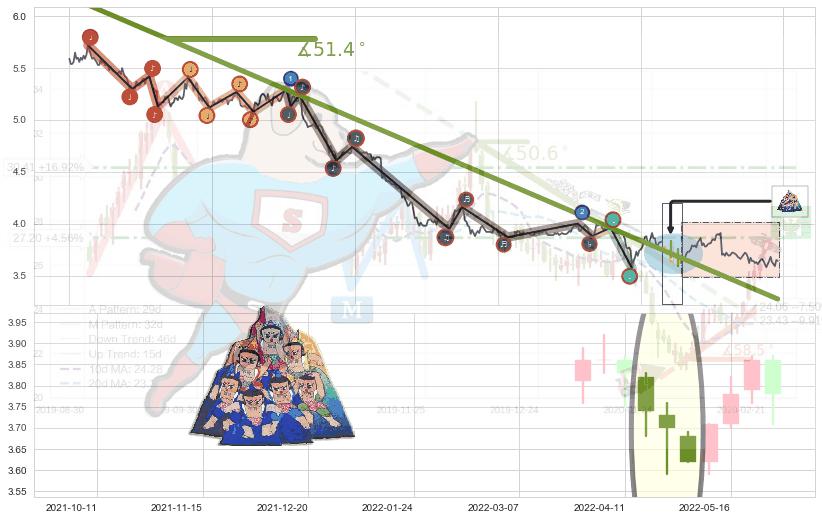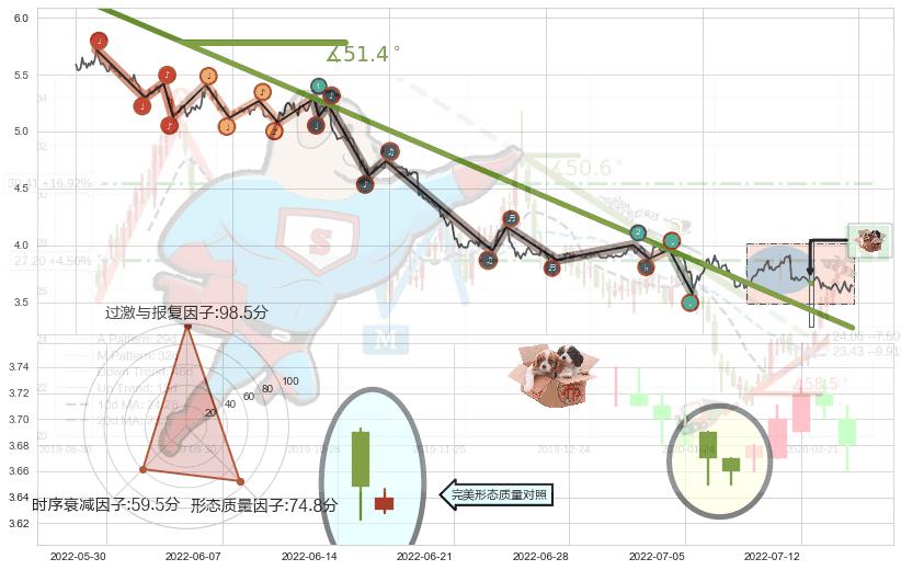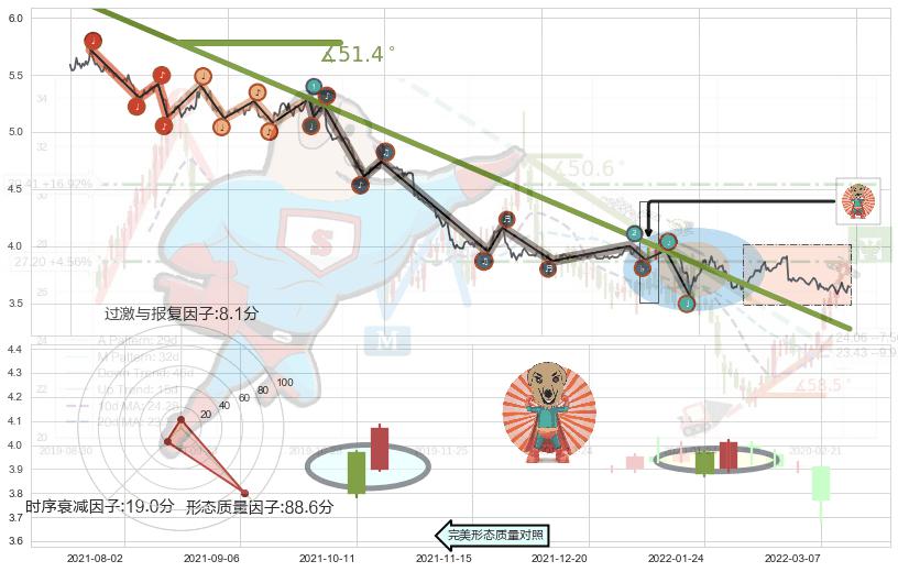 ➣ 2020-08-17-2022-04-01下跌趋势存在反转上涨[机会],其原下跌趋势的阻力位(3.273)已被突破[强支撑信号],原下跌趋势角度: 51.4˚