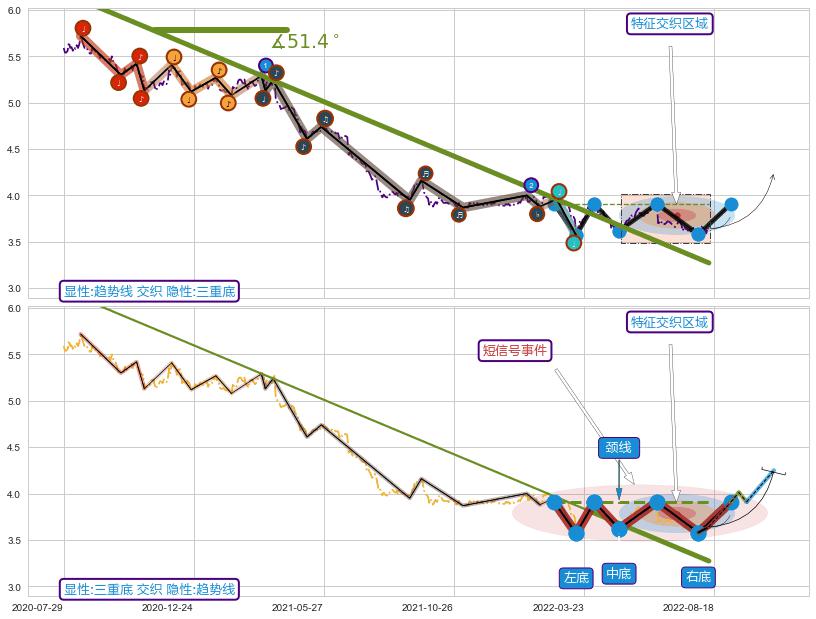 ➢ 三重底属【短级别信号事件】趋势线属【长级别信号事件】长短周期组合信号事件, 短长事件长度比29.90%