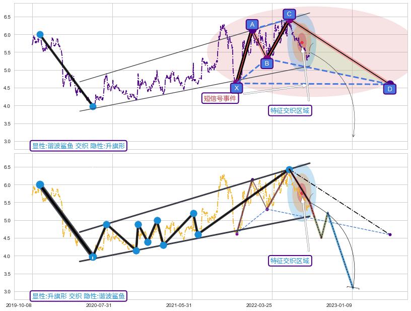 ➢ 谐波鲨鱼属【短级别信号事件】升旗形属【长级别信号事件】长短周期组合信号事件, 短长事件长度比27.22%