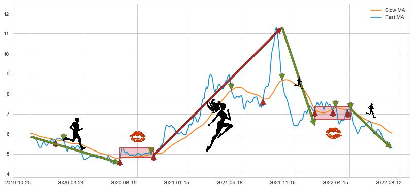 2021-10-11至2022-01-06 慢线与快线呈空头排列, 慢线与快线接触少,无缠绕