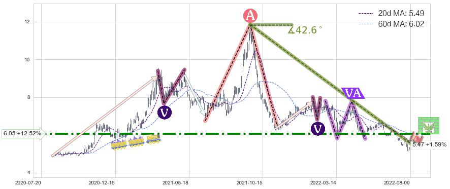 ♞ 20日均线:5.49,60日均线:6.02→ 快线<慢线