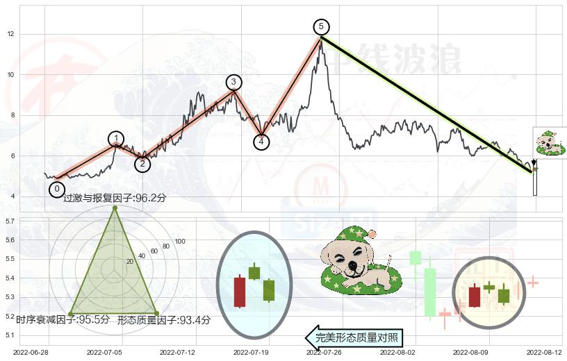 从2021-09-13至2022-08-12,共包含221个交易日,阶段股价下跌-73.22%,阶段股价变动位移路程比: 1 : 5,下跌趋势角度: 42.6
