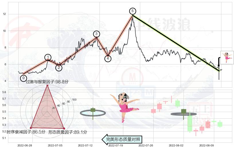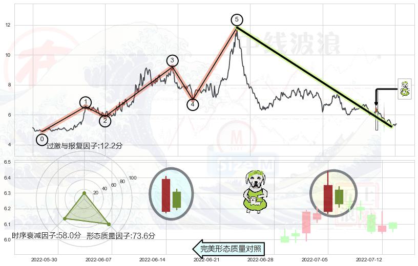 ♘ 阻力价格位6.05,可信任强度77.22%,距离最后交易2022-08-12形成的收盘价格5.38相差 +12.52%