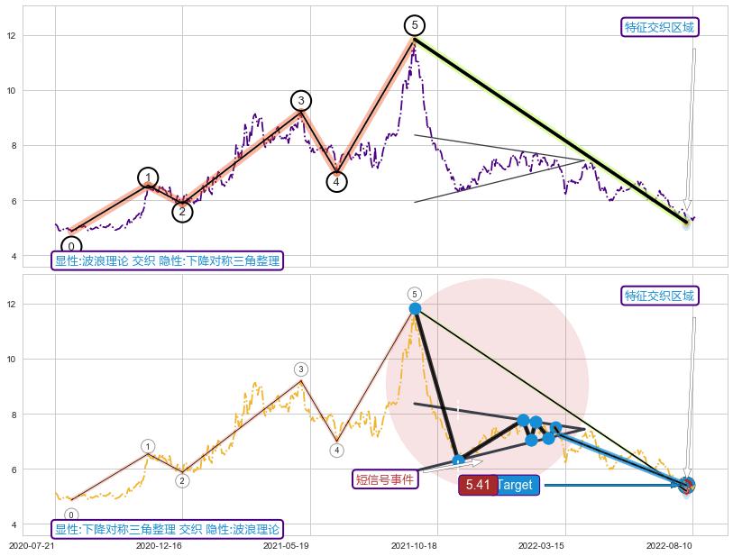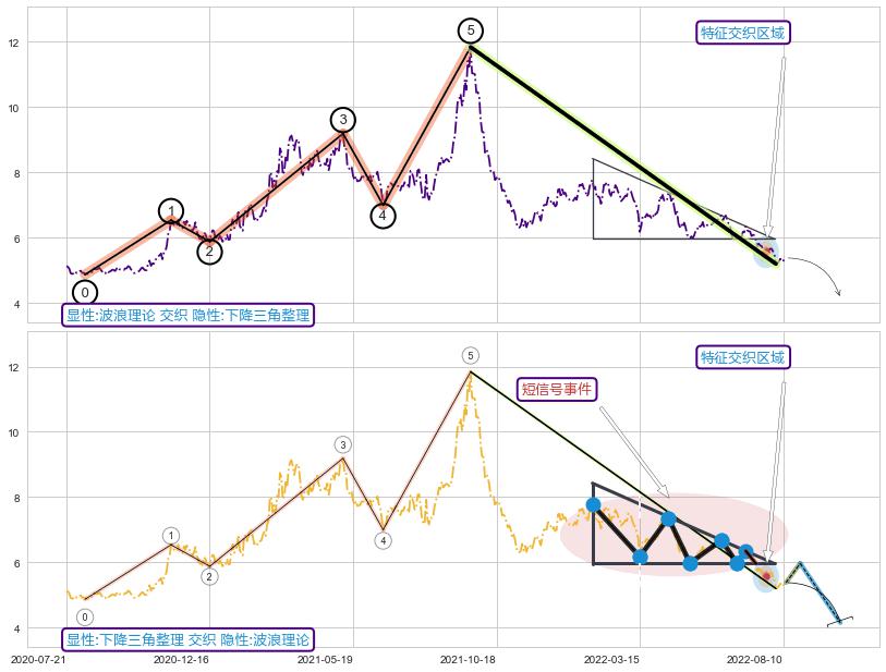 ➢ 下降三角整理属【短级别信号事件】波浪理论属【长级别信号事件】长短周期组合信号事件, 短长事件长度比23.81%
