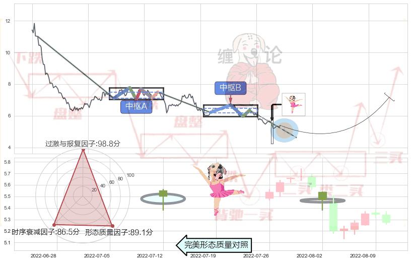 ➢ 【中枢B】:2022-05-16-2022-07-05,中枢由4笔构成,共36交易日, ZG=6.35, ZD=6.21