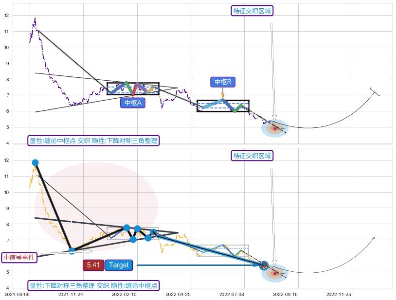 ➢ 下降对称三角整理属【中级别信号事件】缠论中枢点属【长级别信号事件】中长周期组合信号事件,中长事件长度比52.75%