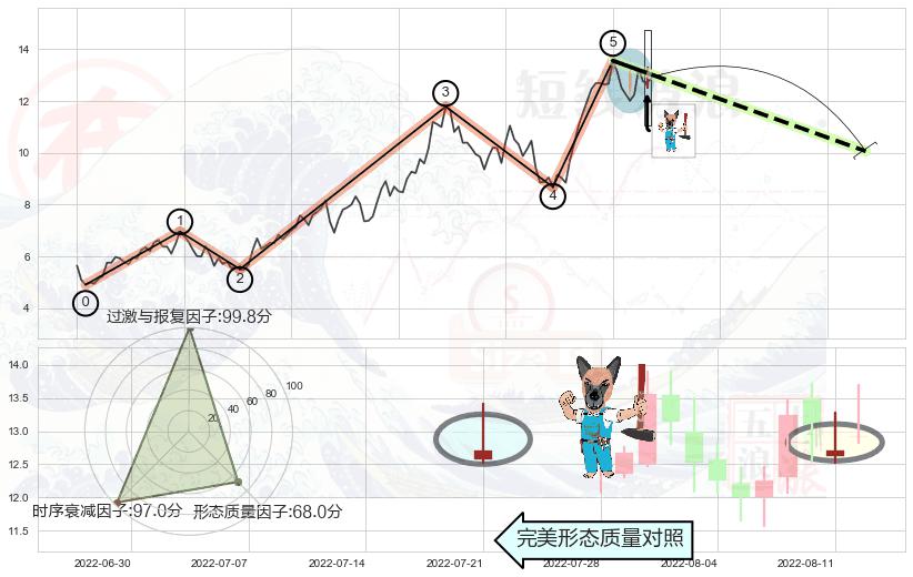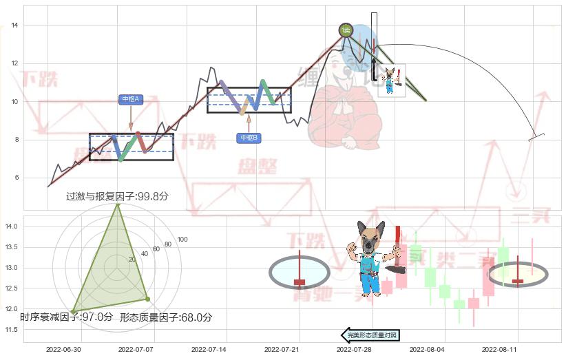 ➢ 🕰 价格走势在2022-08-11至2022-08-11期间形成看跌(高位倒锤头)流星线,残存影响值:-8.35