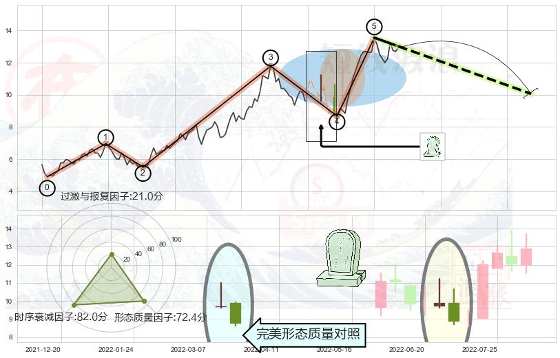➣ 看跌(高位倒锤头)流星线 + 波浪理论上涨浪:浪5回调拐点信号叠加后【反向回撤率】偏高,【看空】信号叠加【存续影响降权】