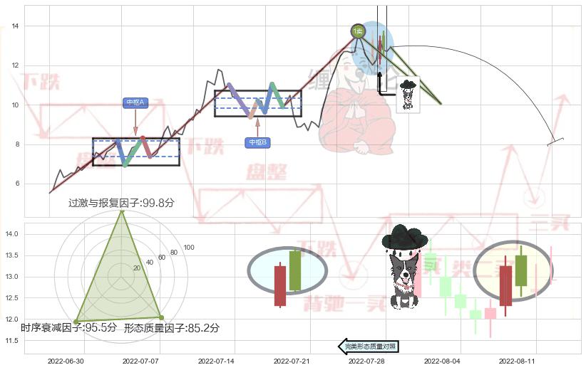 从2022-07-12至2022-08-12,共包含24个交易日,阶段股价上涨41.95%,阶段股价变动位移路程比: 1 : 1.9