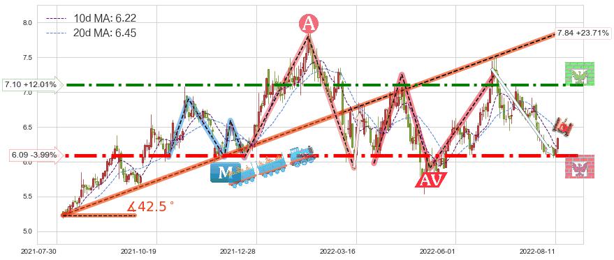 ➣ AI预测: 假定反转如期而至,第❷价格目标位置(2022-09-05, 6.86)