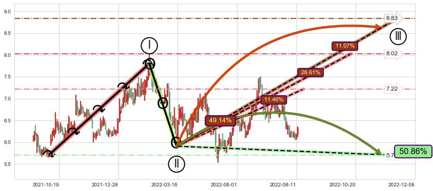 ➢ AI预测: 假定反转如期而至,第❶价格目标位置(2022-08-23, 6.57)