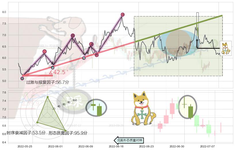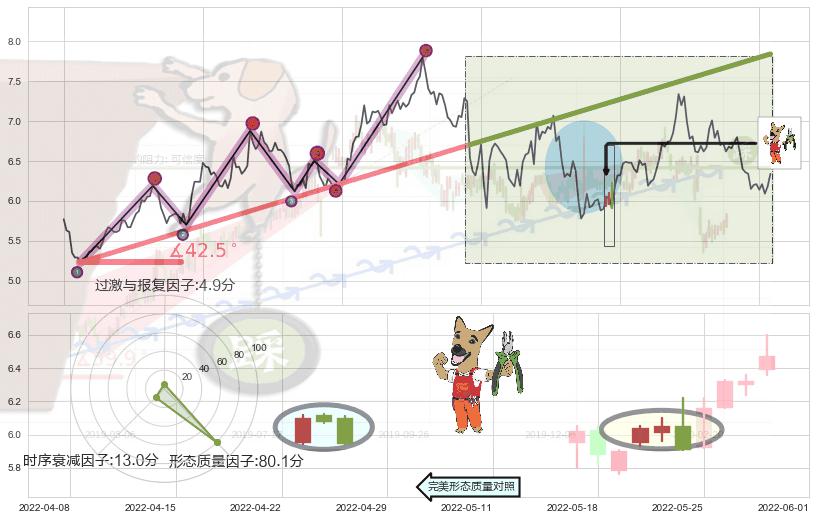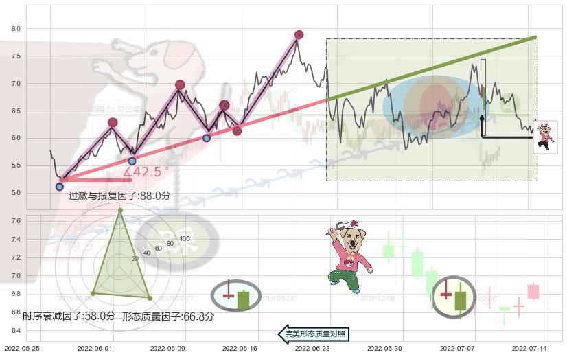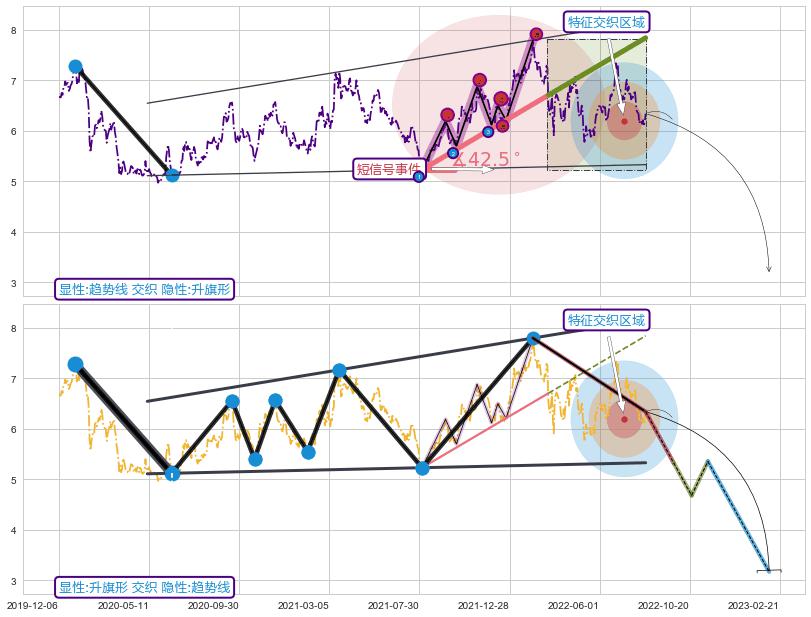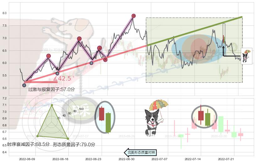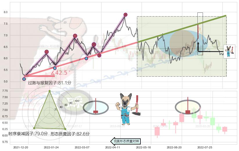 ➢ 2021-08-04-2022-03-07上升趋势存在反转[风险],其原上升趋势的支撑位(7.84)已破位[强阻力信号],原上升趋势角度: 42.5˚