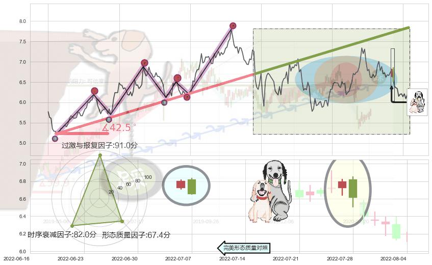 ➢ 🕰 价格走势在2022-08-05至2022-08-08期间形成底部尽头线(上山虎),残存影响值:3.20