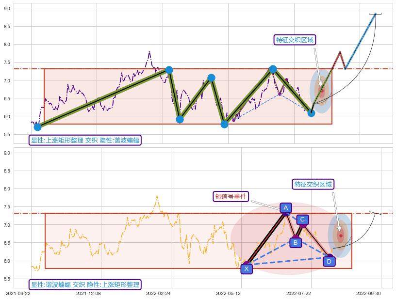 ➢ 谐波蝙蝠属【短级别信号事件】上涨矩形整理属【长级别信号事件】长短周期组合信号事件, 短长事件长度比28.44%