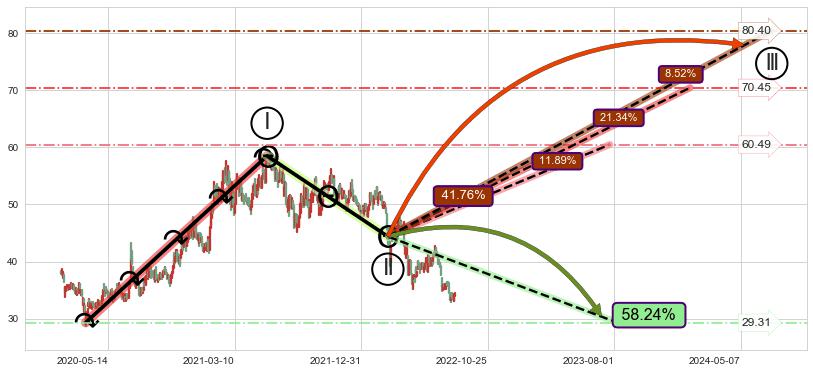 ➢ AI预测: 假定反转如期而至,第❸价格目标位置(2023-05-26, 58.50)