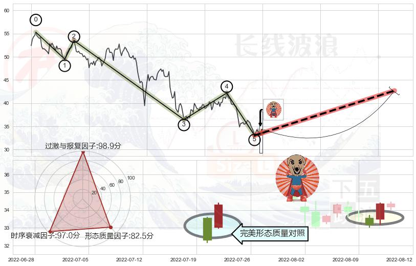 ➢ 谐波蝙蝠d拐点上涨支撑 🔜 波浪理论下跌浪:浪5反弹拐点 综合量化分数:58.86 【偏多】