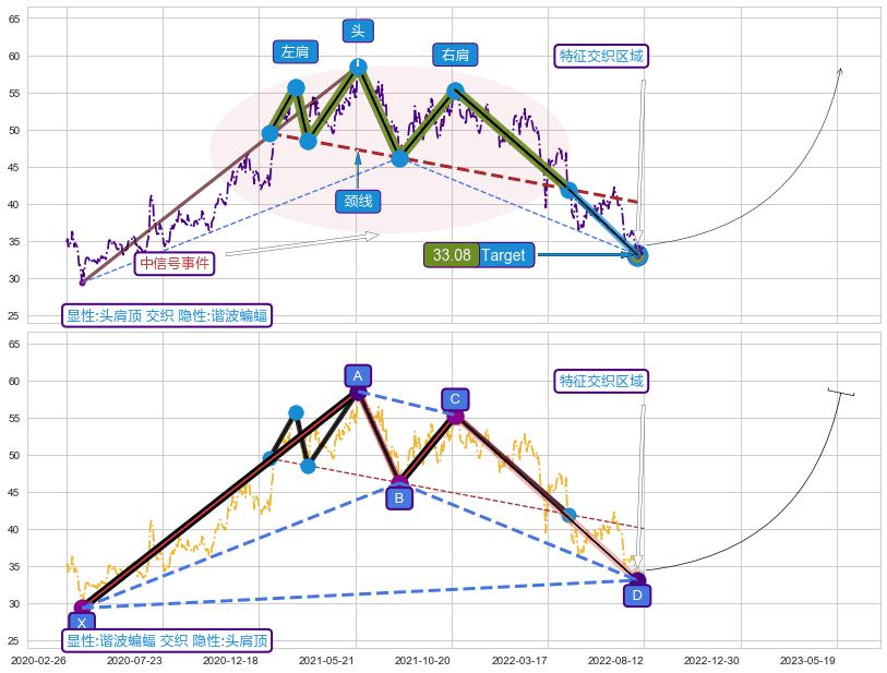 ➢ 头肩顶属【中级别信号事件】谐波蝙蝠属【长级别信号事件】中长周期组合信号事件,中长事件长度比64.71%