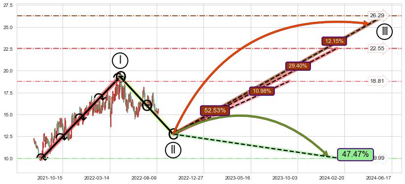 ➣ c.1: 当前c浪回调位置(2022-08-10, 14.92),仍然有回调空间