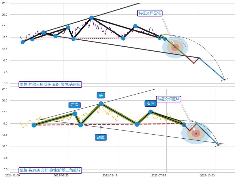 ➢ 【未确认突破,预测即将形成突破】头肩顶起点:2021-12-14, 预测突破点:2022-08-18,形态共166交易日