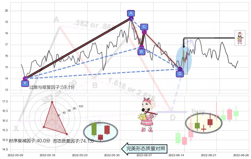 ➢ 曙光初现形态 🔜 谐波蝙蝠d拐点上涨支撑 综合量化分数:52.59 【中性】