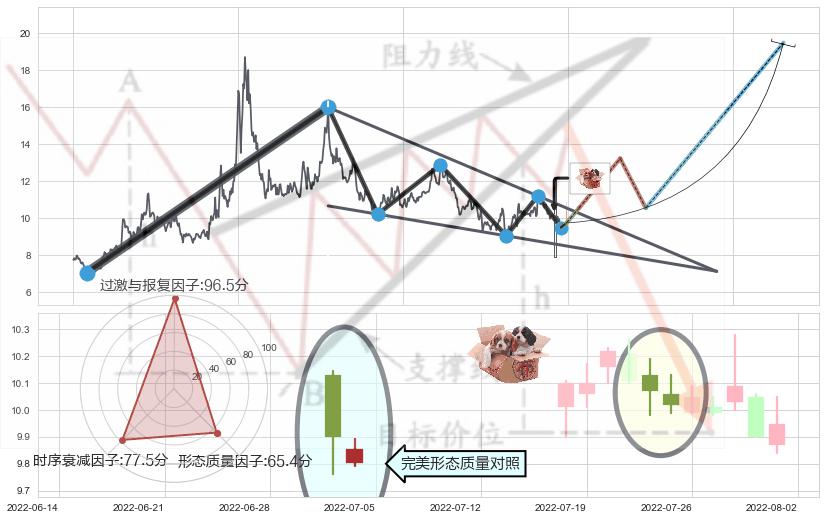 ➢ 🕰 价格走势在2022-07-28至2022-07-28期间形成看涨(低位)倒锤头线,残存影响值:2.72