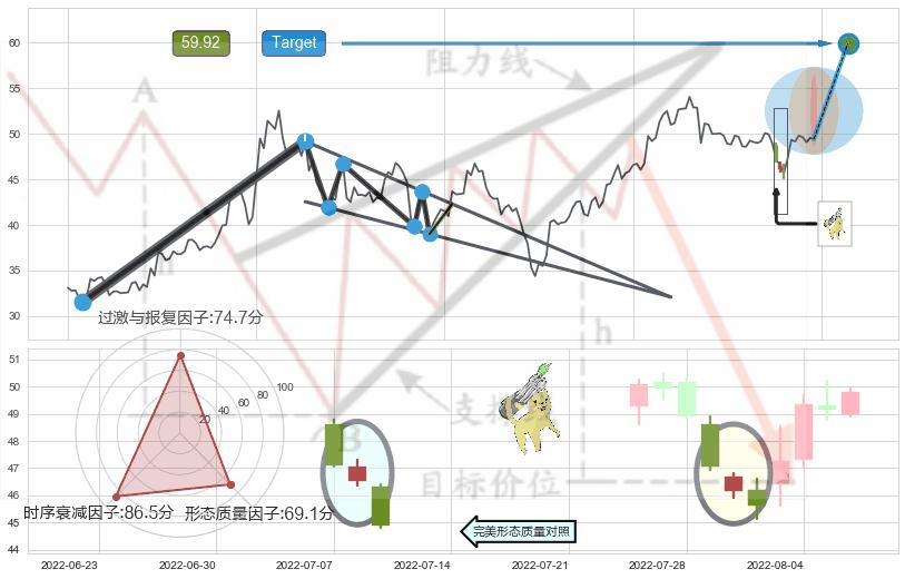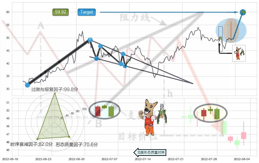 ♘ 支撑价格位41.08,可信任强度55.43%,距离最后交易2022-08-12形成的收盘价格49.45相差 -16.92%