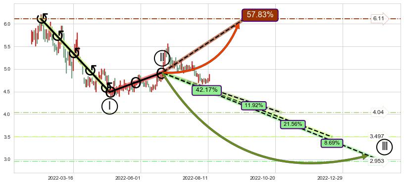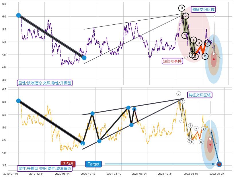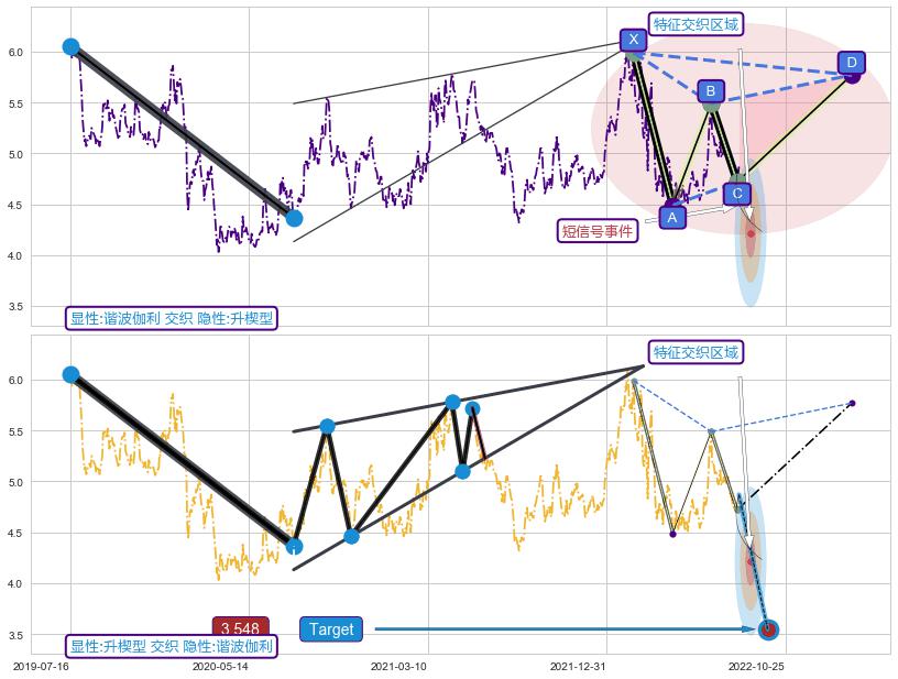 ➣ 循环浪继续向下【平均值】位置(2022-12-19, 3.497),匹配聚类样本比例51.12%, 可能性概率21.56%