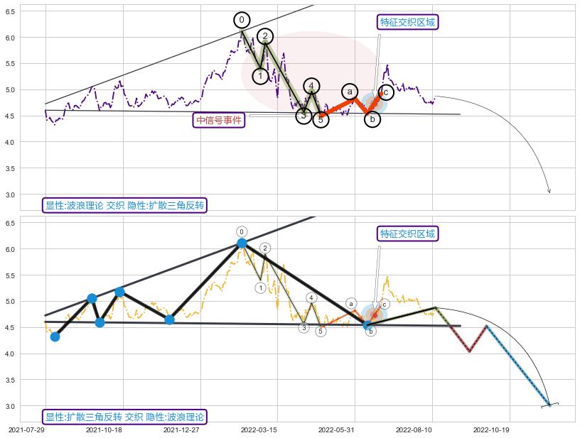 ➢ 波浪理论属【中级别信号事件】扩散三角反转属【长级别信号事件】中长周期组合信号事件,中长事件长度比44.83%