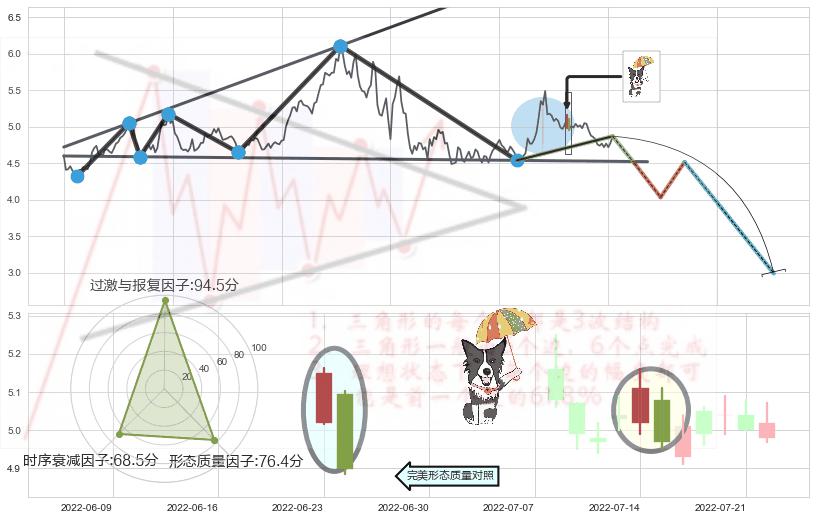 ➢ 倾盆大雨 🔜 扩散三角反转临近支撑猜想转换阻力下跌 综合量化分数:37.17 【偏空】
