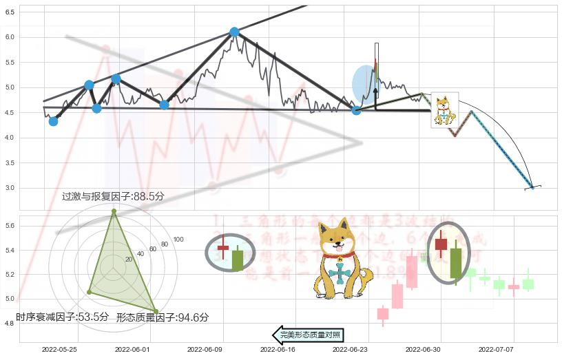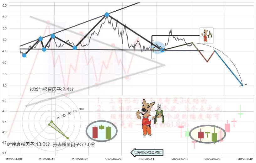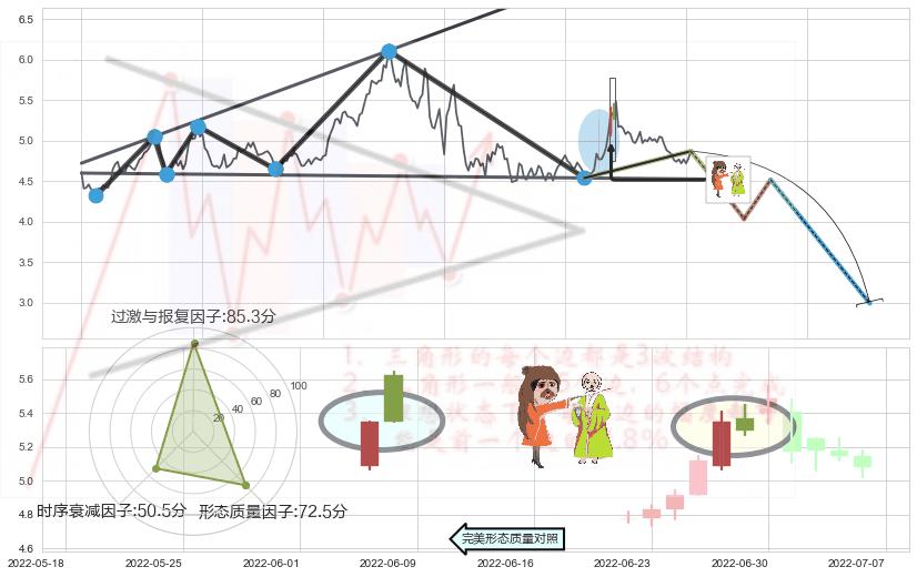 ➣ AI智能: 预测【大方向抉择→空方占优】扩散三角形反转向下突破,预测将在2022-06-13突破颈线