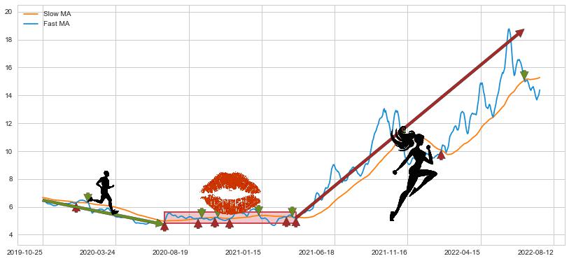 2021-03-30至2022-07-14 慢线与快线呈多头排列, 慢线与快线接触少,无缠绕