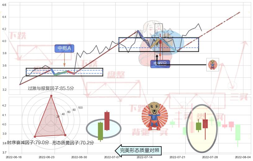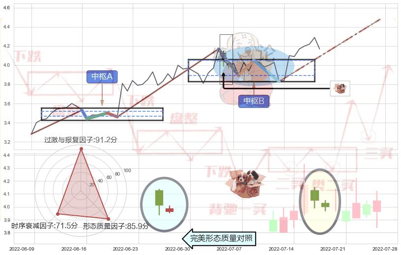➢ 【中枢B】:2022-07-15-2022-08-02,中枢由4笔构成,共13交易日, ZG=4.05, ZD=3.890