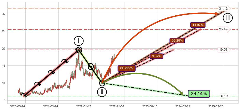 ♘ 支撑价格位14.39,可信任强度37.38%,距离最后交易2022-08-12形成的收盘价格17.00相差 -15.34%