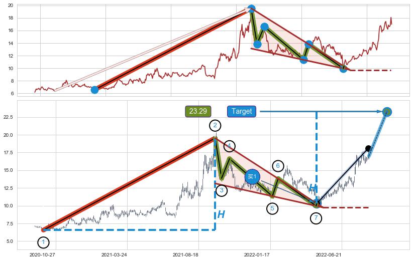 ➢ 波浪理论:猜想达到c点后小回调终止反转上涨 → 上涨 → 【拐点】临近 → 阶段均值回复结束后继续大周期趋势跟踪