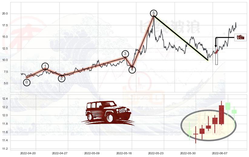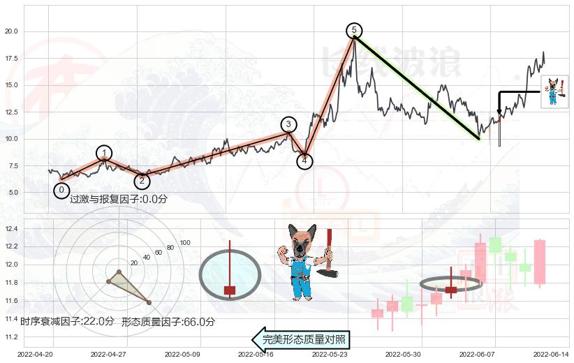 ➢ 🕰 价格走势在2022-05-30至2022-06-06期间形成低档五阳线,残存影响值:0.65