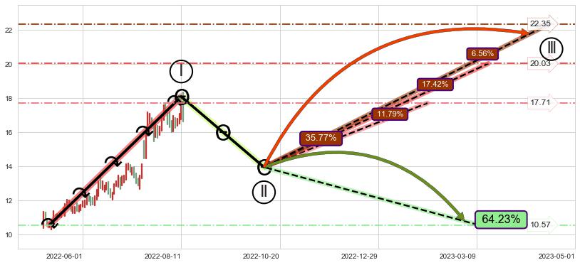 ➣ AI预测: 假定反转启动后, 第❸目标位置(2023-01-13, 9.97)