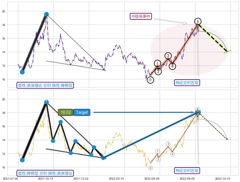 ➢ 波浪理论属【中级别信号事件】降楔型属【长级别信号事件】中长周期组合信号事件,中长事件长度比58.97%