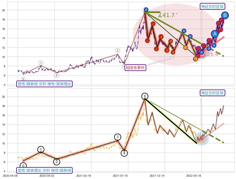 ➢ 趋势线属【短级别信号事件】波浪理论属【长级别信号事件】长短周期组合信号事件, 短长事件长度比35.94%