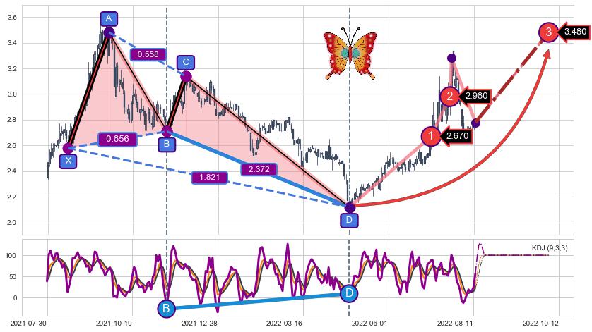 ➣ 已完成【蝴蝶】形态起点X: 2021-08-17, 终点D: 2022-04-26, 共166交易日